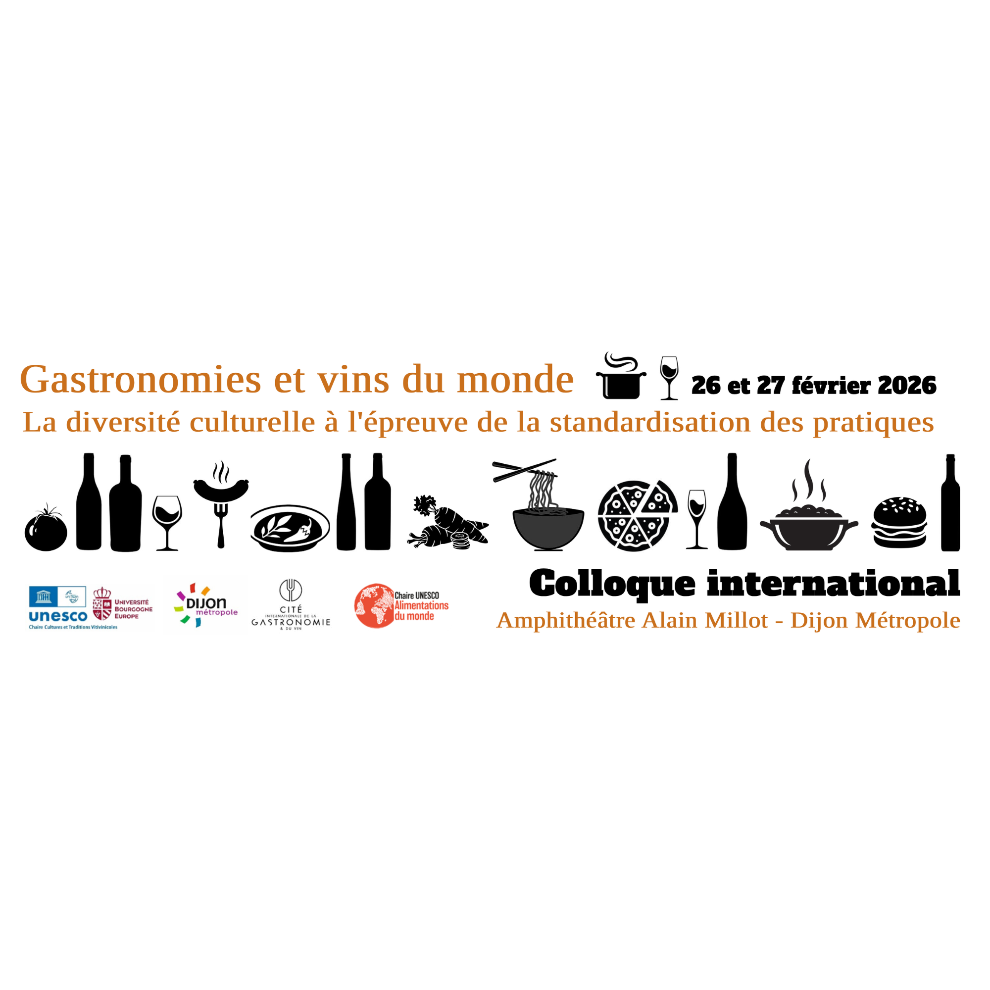 Ce colloque est organisé par la Chaire UNESCO « Cultures et traditions Vitivinicoles » de l’Université Bourgogne Europe, en partenariat avec la Cité Internationale de la Gastronomie et du Vin de Dijon, la Chaire UNESCO « Alimentations du Monde » de Montpellier et la Métropole de Dijon.
